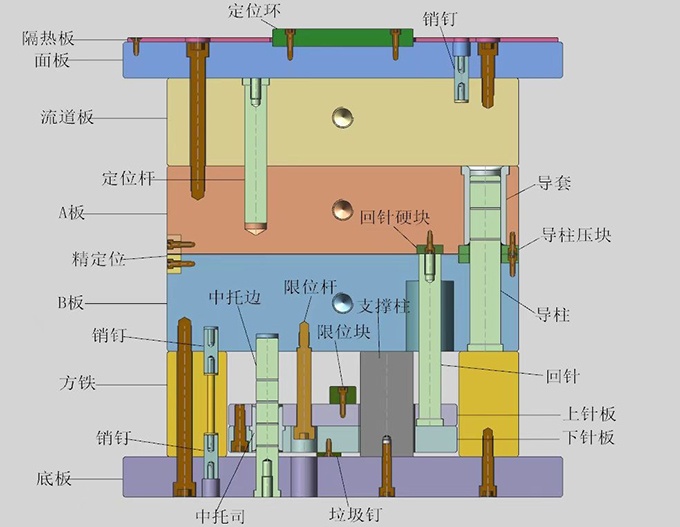 嘉興名匯主要從事各類非標模架,機械零部件等金屬制品的制造,模架包括塑膠模,壓鑄模,五金模;涉及模具行業產品有航空航天,汽車部件,日常用品,電器產品;機械零部件涉及箱體零件加工,自動化設備零件加工等;嘉興名匯按國際通用標準進行生產,也可以按客戶的非標要求量身定做。 模架是模具之半制成品,由各種不同的鋼板配合零件組成,可以說是整套模具的骨架。由于模架及模具所涉及的加工有很大差異,模具制造商會選擇向模架制造商訂購模架,利用雙方的生產優勢,以提高整體生產質量及效率。 注塑模架結構大致分成:預成型裝置、定位裝置及頂出裝置。一般配置為面板、A板(定模)、B板(動模)、方鐵(模腳)、底板、頂針面板、頂針底板、以及導柱、回針等零配件。 注塑時,上下模會先結合,讓塑料于上下模塊成型部份成型。 然后上下模會分開,并由以下模為主的頂出裝置將成品推出。 上模(定模) 配置為內模件成型部分或原身成型部分。 流道部分〔含熱咀、熱流道(氣動部分)、普通流道〕。 冷卻部分(運水孔)。 下模(動模) 配置為內模件成型部分或原身成型部分。 推出裝置(成品推板、頂針、司筒針、斜頂等)。 冷卻部分(運水孔)。 固定裝置(支撐柱、方鐵、針板及中托邊等)。 | ![]() |